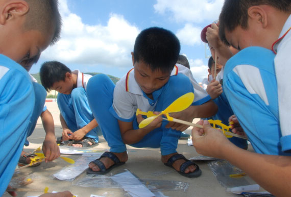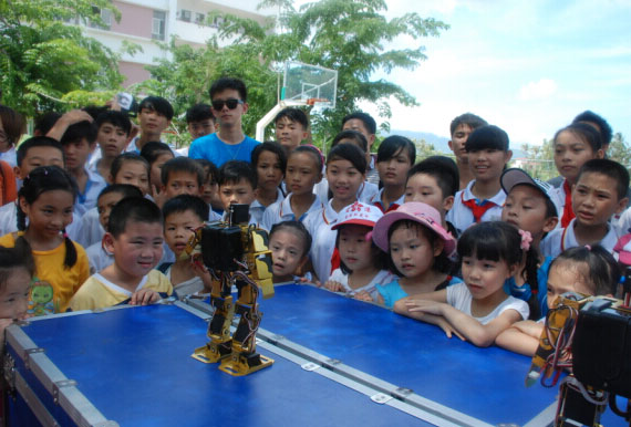同時,海口電視臺《寶貝真棒》欄目組還帶來了一系列精彩紛呈的兒童節(jié)目,海南省科技活動中心還特意為孩子們派出了科普大篷車、帶來了3D科普展板,在專業(yè)航模老師的帶領(lǐng)下,來自城市里的三十個孩子和陵水的留守兒童結(jié)成了對子,一起制作航模,觀看機(jī)器人表演。