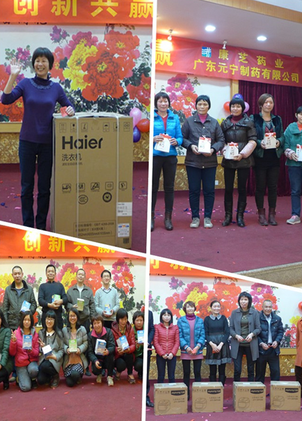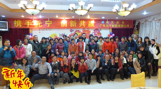 2月13日下午,廣東元寧制藥有限公司2014年度總結(jié)表彰大會(huì)暨2015年新春年會(huì)在碧翠湖酒家隆重舉行。年會(huì)以“攜手元寧、迎新共贏”為主題,分為總結(jié)表彰大會(huì)和聯(lián)歡會(huì)兩個(gè)環(huán)節(jié)。康芝藥業(yè)副董事長(zhǎng)兼元寧制藥法人代表洪江濤先生、元寧制藥總經(jīng)理徐建紅女士、元寧制藥廠長(zhǎng)高宏生先生和元寧60多名員工歡聚一堂,辭舊迎新。