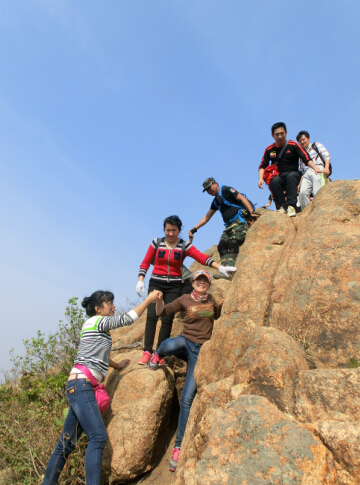 在整個登山過程中,充分體現整個團隊相互幫助、團結協作的融洽的氛圍。在平坦的道路上大家談笑風生,相互間開著玩笑;在崎嶇的山路上,大家彼此幫扶、相互牽引,共同度過暫時艱難;在有人掉隊時,大家相互鼓勵、支持,共同前行。正是這種扶持與協作,讓大家共同抵達了最高峰。