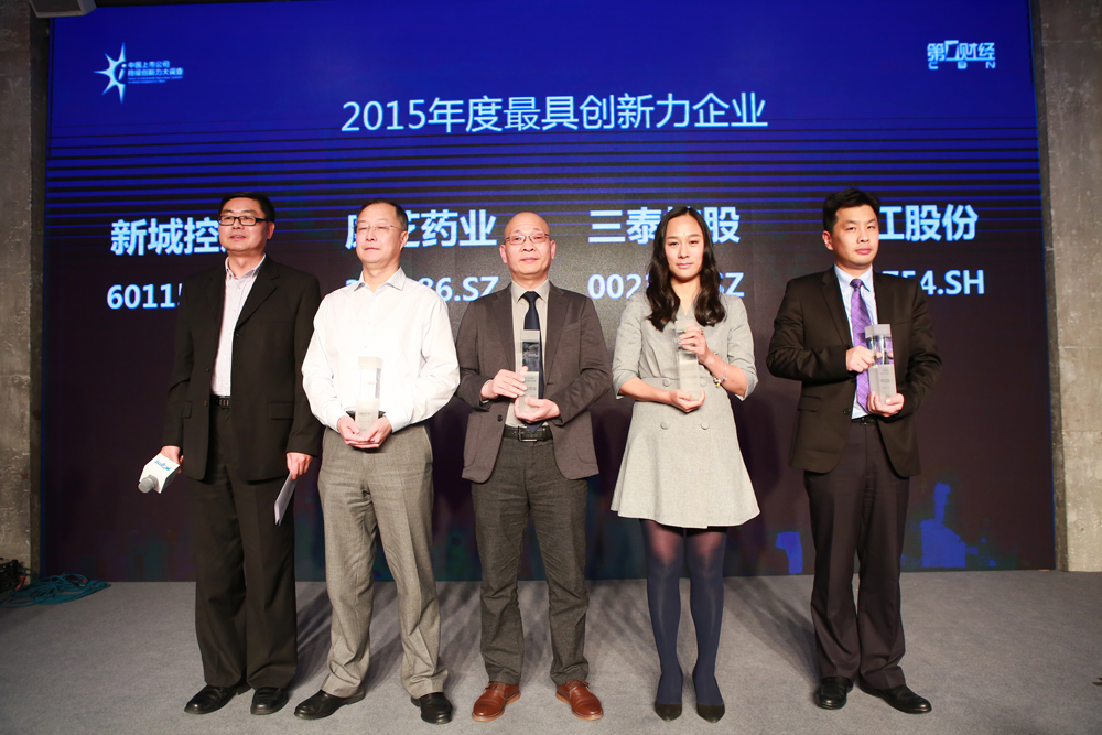 4月8日晚,由國內知名財經媒體集團第一財經主辦的“中國上市公司持續創新力大調查頒獎典禮暨一財董事匯交流晚宴”在上海舉行。康芝藥業副總裁肖斌代表公司出席,并受領“2015年度最具創新力企業”獎杯。