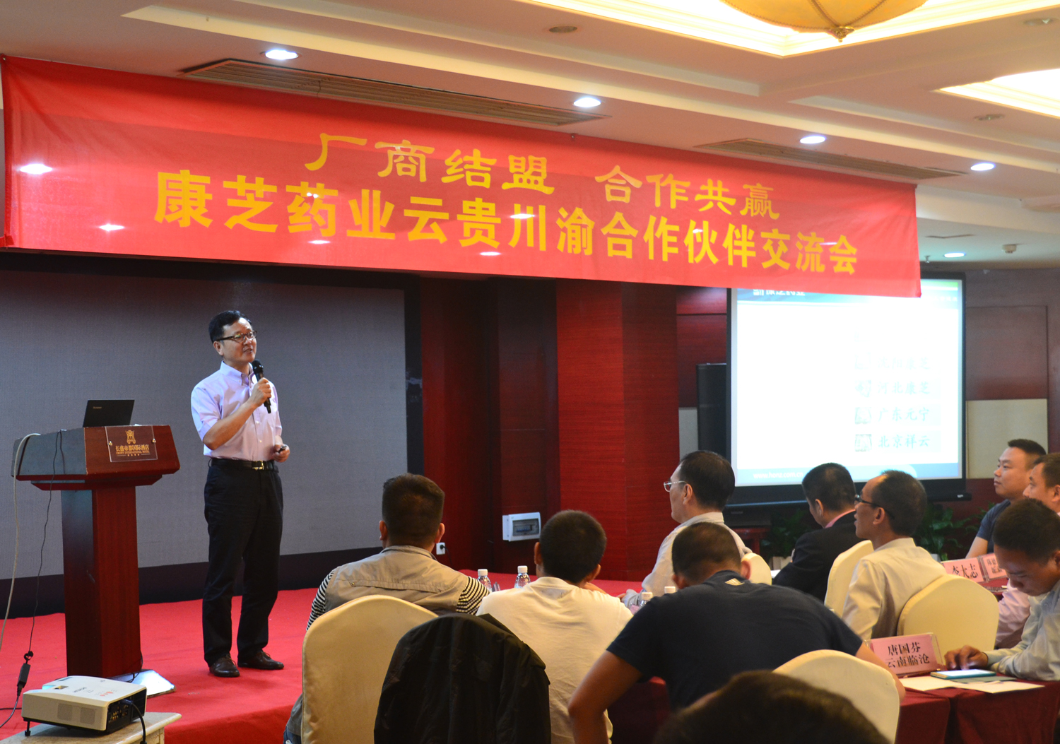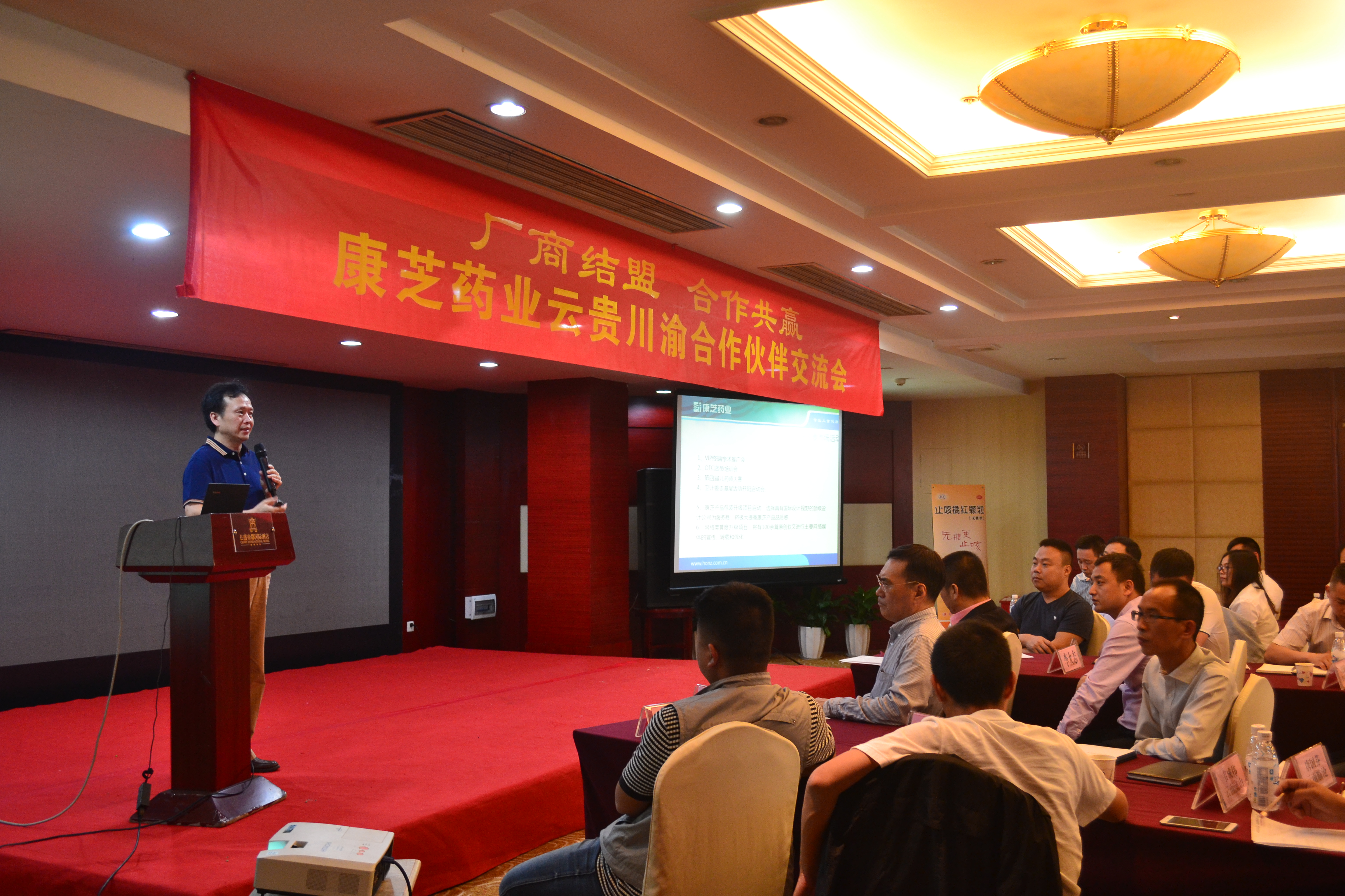 當天上午,來自云貴川渝等省區的數十位代理商朋友來到交流會現場,認真專注地聽取了康芝高管人員的分析和介紹,并積極參與互動,交流意見,現場亦不時響起熱烈的掌聲。