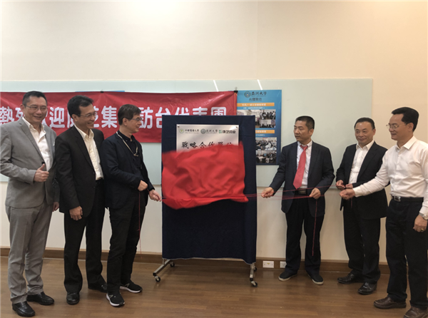 本次赴臺(tái),考察團(tuán)參觀了中國(guó)醫(yī)藥大學(xué)及其附屬醫(yī)院,并在考察亞洲大學(xué)時(shí)與亞大產(chǎn)學(xué)營(yíng)運(yùn)產(chǎn)學(xué)長(zhǎng)林田富先生等人進(jìn)行座談。其后,洪江游董事長(zhǎng)和亞洲大學(xué)鄧成連副校長(zhǎng)共同為“中國(guó)醫(yī)藥大學(xué)、亞洲大學(xué)、康芝集團(tuán)戰(zhàn)略合作單位”揭牌。從簽約到揭牌,雙方的戰(zhàn)略合作關(guān)系得到深化。