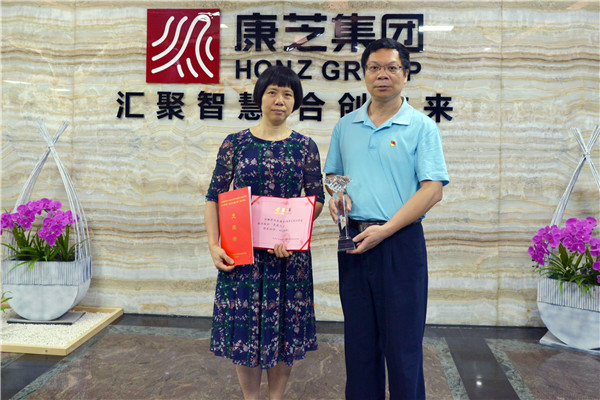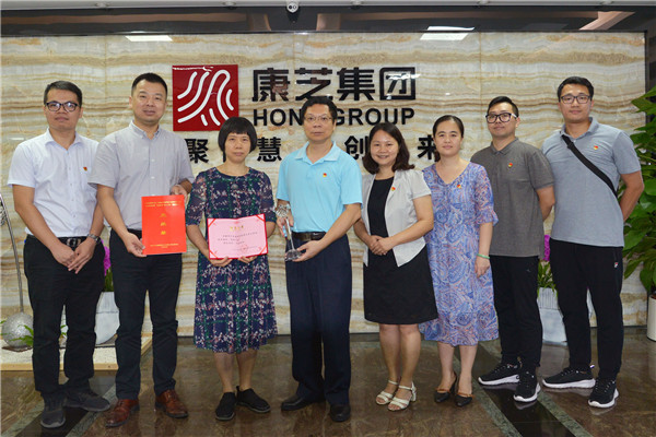 7月22日,廣州市越秀區工商業聯合會黨組書記張志強同志、廣州市越秀區工商業聯合會黨組成員鄔翠峰同志親臨康芝藥業廣州總部授予洪麗萍同志獎項,高度肯定了其在黨建事業上的支持和配合。