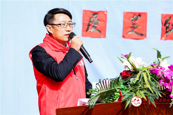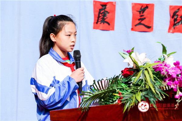儀式開始,康芝藥業公共關系部總監孟攀向學校師生傳達了來自康芝藥業及康芝紅臉蛋基金的關懷和問候,希望通過紅臉蛋圖書館可以讓孩子們閱讀到更多的書籍,能在物質和精神方面共同脫貧,成為國家的未來,繼承延安精神,弘揚愛心文化。同時也期待更多企業、社會人士加入關愛兒童健康成長的公益行列,秉承洪江游董事長的精神指示,幫助更多中國兒童健康成長。