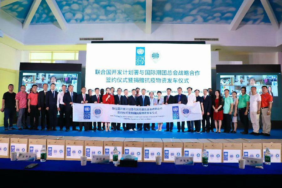 除捐贈抗疫物資發車儀式外,活動中,國際潮團總會主席洪江游、執行主席陳幼南博士代表國際潮團總會簽署了與聯合國開發計劃署的合作備忘錄,雙方正式建立戰略合作伙伴關系。