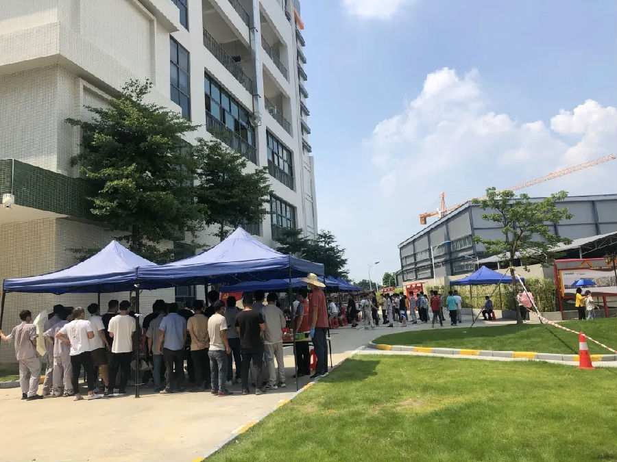 晚上7點,愛護生產基地全體員工正在有序進行核酸檢測中,行政部積極安排食堂廚房為每一位員工提供了營養晚餐。直至深夜,全部員工核酸檢測完畢。