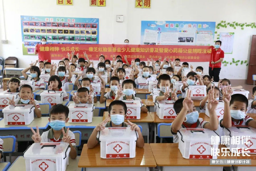 本次公益活動現場不僅為學校師生們帶來了來自康芝的美好中秋祝福,還向合水小學的孩子們派發了286個康芝紅臉蛋愛心藥箱,以實際行動為師生們的健康保駕護航。