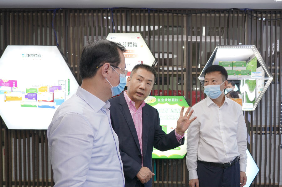 陳綠平副省長一行參觀了康芝集團的文化走廊、集團旗下康芝藥業和愛護公司的產品展廳,對康芝集團的發展歷程、戰略布局、業務板塊、科研實力、企業文化和公益項目等進行了深入了解和互動交流。