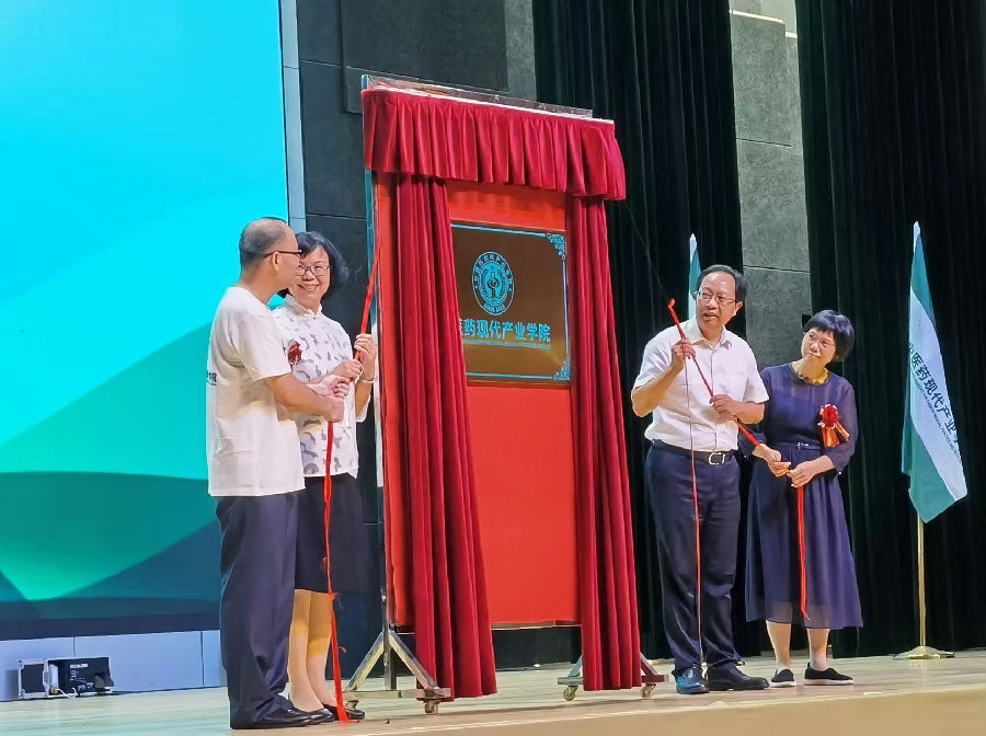 活動中,廣東藥科大學校長翟理祥研究員、云浮市政協主席梁麗嫻女士、君安醫生集團董事長車軍先生和康芝藥業副董事長洪麗萍女士在儀式上分別致辭,并共同為“廣東藥科大學中醫藥現代產業學院”揭牌。