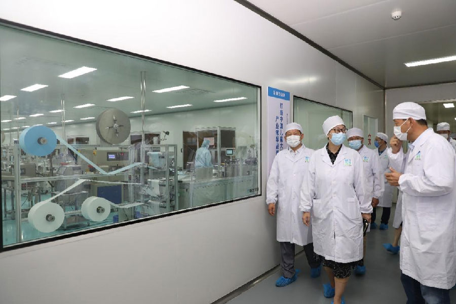 隨后,海南省藥監(jiān)局朱寧局長一行在我司領(lǐng)導的陪同下,參觀了康芝藥業(yè)的醫(yī)用防護口罩生產(chǎn)車間,康芝藥業(yè)海南基地總經(jīng)理高洪常現(xiàn)場匯報了康芝藥業(yè)的口罩產(chǎn)品情況、海南(國際)醫(yī)療防護用品生產(chǎn)基地項目情況以及本次疫情期間康芝藥業(yè)踐行的“疫情防控與安全生產(chǎn)兩頭抓”的閉環(huán)生產(chǎn)管理辦法。朱寧局長對康芝藥業(yè)在疫情期間積極履行社會責任、擴充產(chǎn)能、申報創(chuàng)新產(chǎn)品與服務(wù)、服務(wù)疫情防控大局等方面給予了充分肯定。