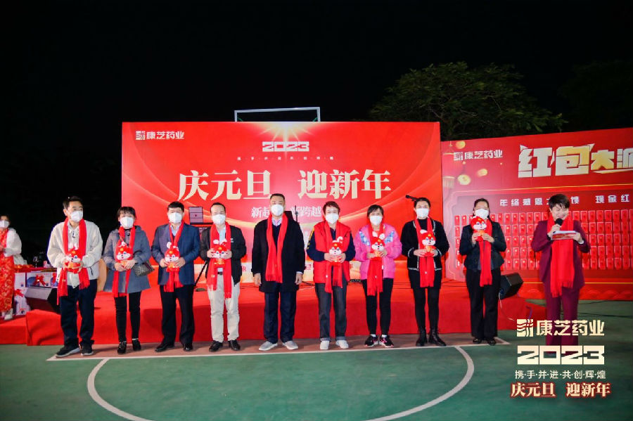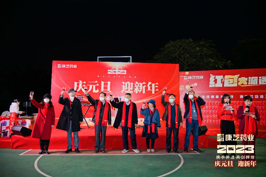 洪江游董事長代表康芝藥業(yè)向全體康芝人送去了新年祝福,同時(shí)表示自疫情開放之后,各類防疫藥品的社會(huì)需求量激增,相關(guān)藥物的儲(chǔ)備緊張,康芝藥業(yè)受到海南省政府領(lǐng)導(dǎo)及海口市政府領(lǐng)導(dǎo)高度關(guān)注并親臨康芝園區(qū)調(diào)研指導(dǎo)。作為上市藥企,康芝藥業(yè)將責(zé)無旁貸地?fù)?dān)起企業(yè)社會(huì)責(zé)任,保質(zhì)保量地安全生產(chǎn)防疫物資及藥品。這個(gè)任務(wù)光榮、艱巨且偉大!隨后,董事長洪江游帶著領(lǐng)導(dǎo)班子上臺(tái)祝酒,由衷地感謝為了滿足防疫藥品生產(chǎn)需求,心甘情愿留守園區(qū),加入全閉環(huán)生產(chǎn)環(huán)境,開足馬力、加班加點(diǎn)、全力保障防疫物資穩(wěn)定供應(yīng)的康芝員工們,相信在大家的共同努力下,2023 年康芝藥業(yè)將會(huì)再攀高峰,迎來更好的發(fā)展,未來會(huì)更加精彩且輝煌!