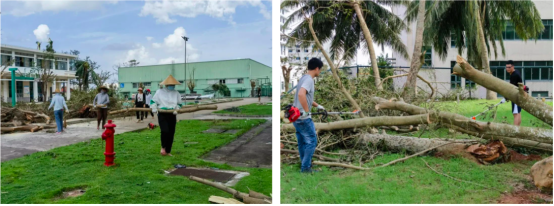 根據(jù)公司制定的海南生產(chǎn)基地臺(tái)風(fēng)防災(zāi)工作部署安排, 海南生產(chǎn)基地總經(jīng)理高洪常組織基地員工,爭(zhēng)分奪秒地開(kāi)展基地各生產(chǎn)車間、園區(qū)基礎(chǔ)措施、園林花木等損壞情況檢查,搶修因?yàn)?zāi)受損的設(shè)備設(shè)施并清理倒伏的樹(shù)木電桿等災(zāi)后重建工作,全力推進(jìn)康芝藥業(yè)海南生產(chǎn)基地“有序復(fù)工、安全復(fù)工、全面復(fù)工”。