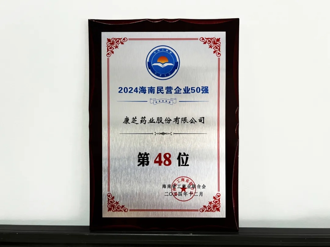 本次康芝藥業榮登“2024海南民營企業50強”榜單,是社會各界對公司綜合實力的認可,更是對公司未來發展的激勵和鞭策。